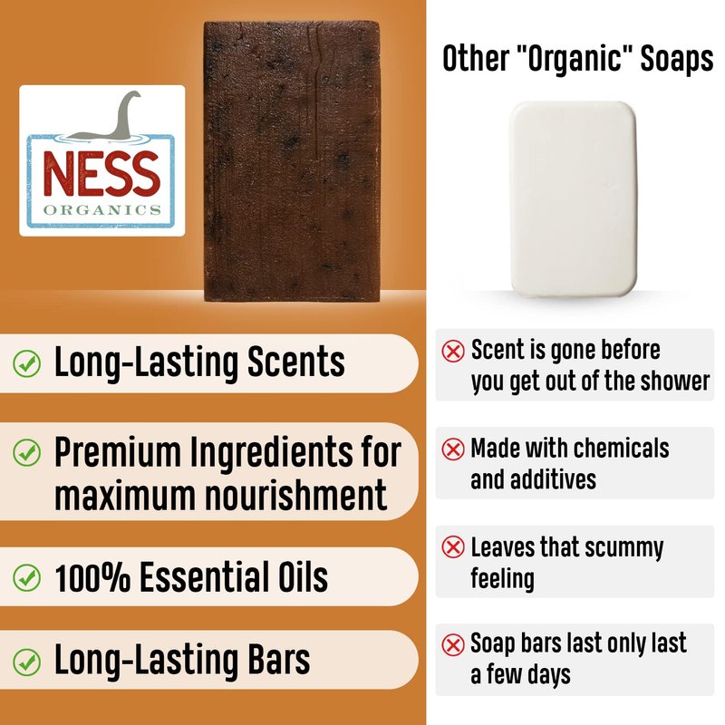 - ALL NATURAL CEDAR & CITRUS SCENT - Ness Organics soap bars build a nice lather and create an authentic scent that will stick around for hours. Our organic soap bar has a long lasting scent made from essential oils and or fragrances that any man will love.