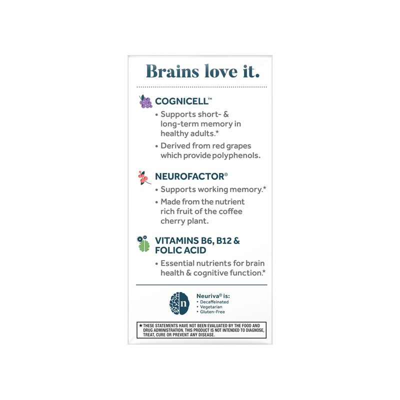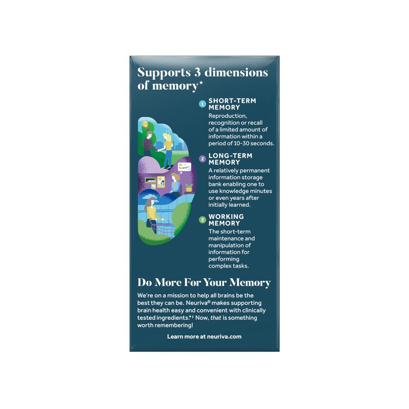 NEURIVA Memory 3D Brain Supplement - Decaffeinated Nootropic Capsules for Memory, Focus, & Cognitive Function - Short Term, Long Term, & Working Memory Support - 50ct