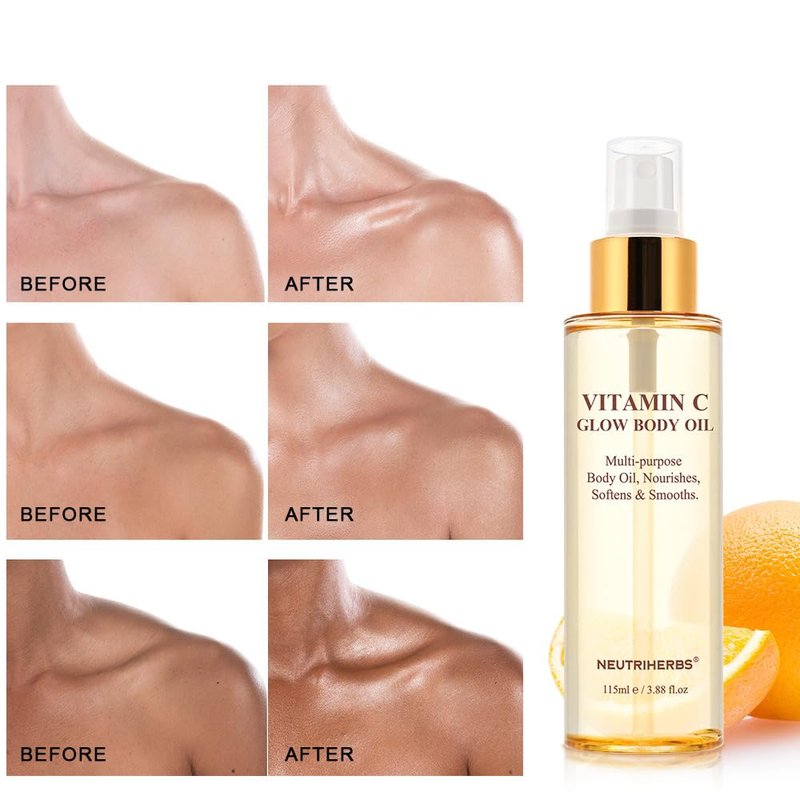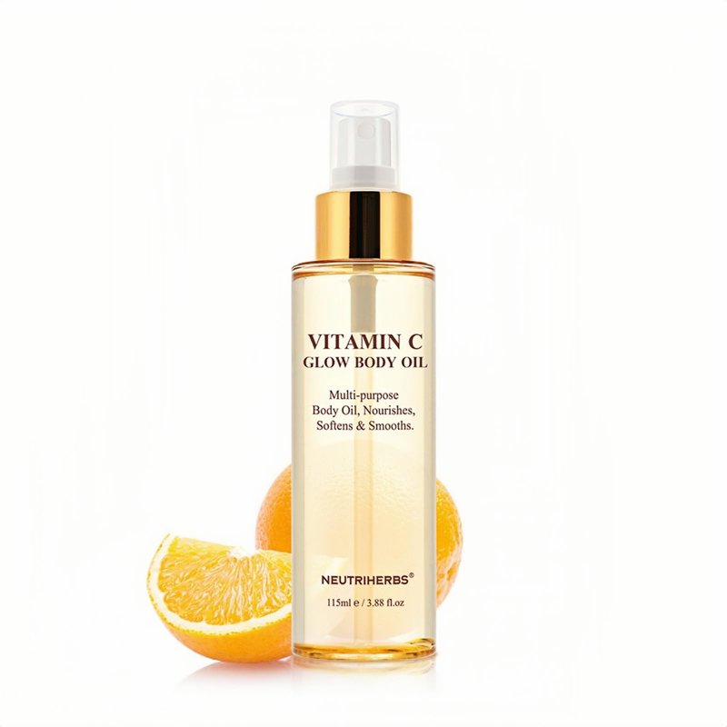 NEUTRIHEREBS Vitamin C Softens And Smooths Body Oil For Moisturizing A luxurious, lightweight, multipurpose Vitamin C Glow Body Oil combining Vitamin C, Rosehip Oil, Ceramide, to infuses skin with instant moisture for soft, touchable results and visibly improve skinโs resilience for a healthy, radiant look. INGREDIENTS: