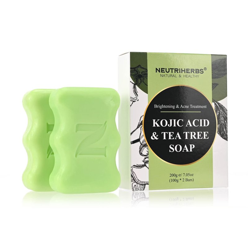 Neutriherbs Kojic Acid Soap,Anti Acne Beauty Soap for Body & Face, Brighten, Smooth Skin Soap Bar, Gently Handle Acne,Skin Irritations,Dark Skin - Tee Tree Scent,100g x 2 Bars