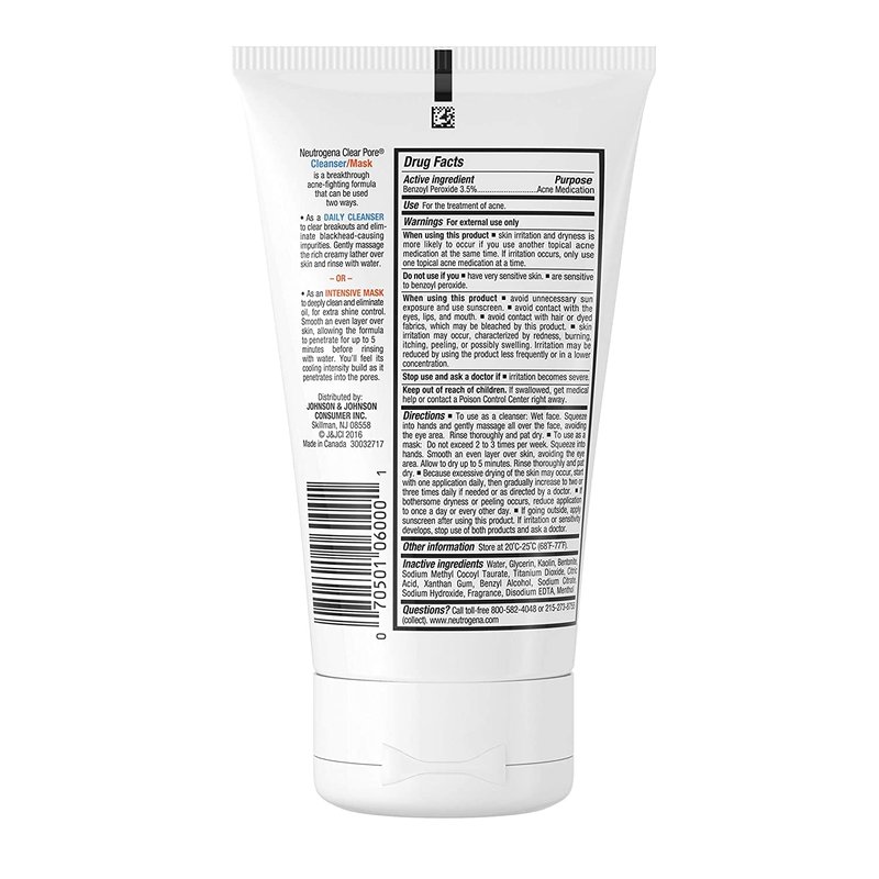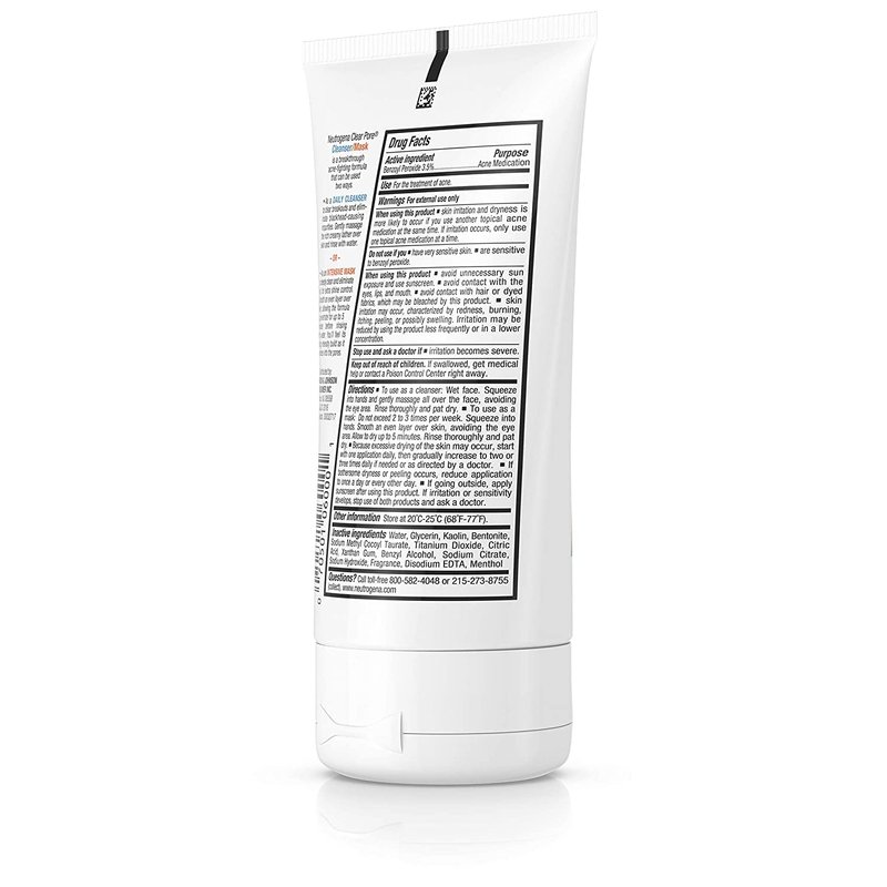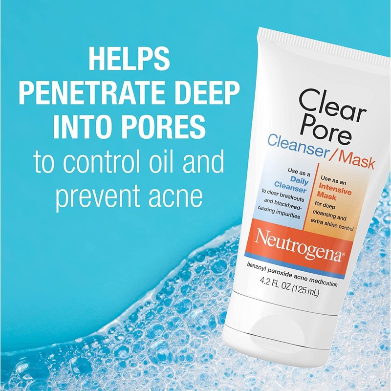 Neutrogena Clear Pore 2 in 1 Facial Cleanser/Face Mask with Kaolin & Bentonite Clay & 3.5% Benzoyl Peroxide Acne Treatment Medication, Daily Face Wash & Shine Control Clay Mask, 4.2 Fl Oz (Pack of 4)