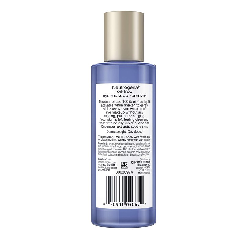 - 5.5-fluid ounces of Neutrogena Oil-Free Liquid Eye Makeup Remover Solution to gently remove eye makeup without pulling or tugging