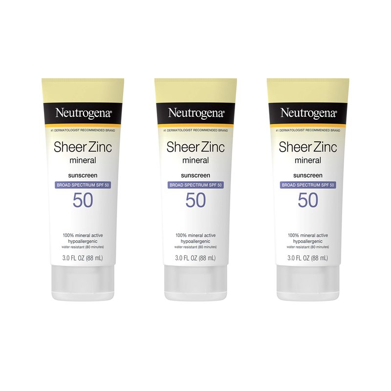 Neutrogena Sheer Zinc Oxide Dry-Touch Mineral Sunscreen Lotion, Broad Spectrum SPF 50 UVA/UVB Protection, Water-Resistant, Hypoallergenic and Non-Greasy, Paraben-Free, 3 fl. oz, Pack of 3