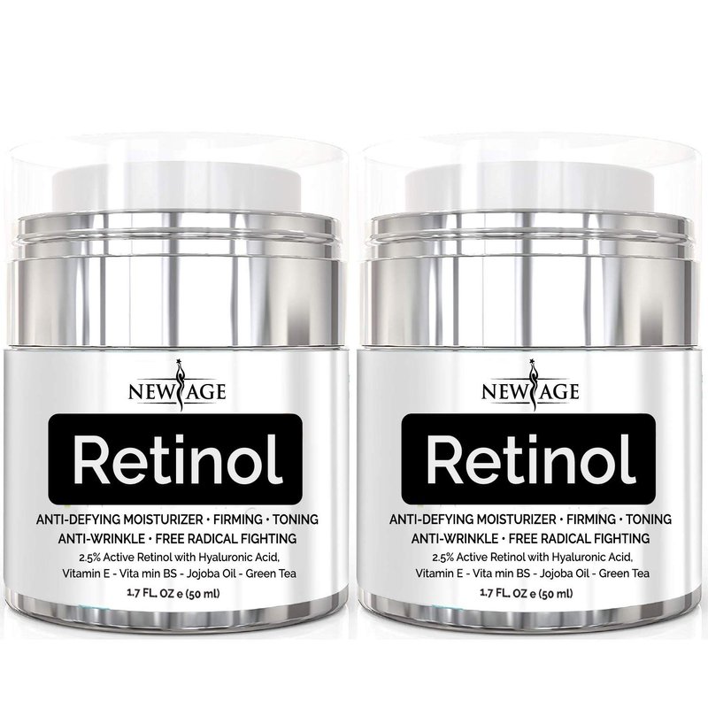 NEW AGE Retinol Cream Neck & Facial Moisturizer Serum with Hyaluronic Acid, Vitamin E - Anti Aging Formula Reduces Wrinkles, Fine Lines-Day and Night Cream 1.7 Fl Oz - 2 Pack - Retinol