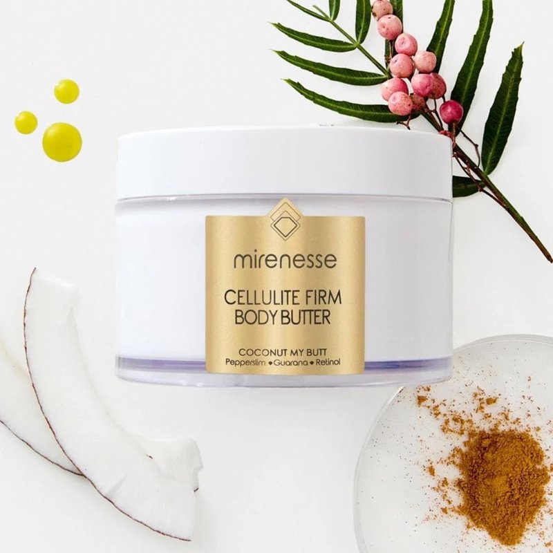 - Experience body care luxury with CELLULITE FIRM BODY BUTTER, a transformative elixir featuring Coconut, Pepperslim, Guarana, and Retinol for a sculpting symphony on your silhouette.