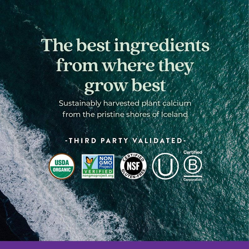 - ORGANIC CALCIUM: USDA Organic plant-based calcium from sustainably harvested Red Marine Algae that’s rich in bone-nourishing calcium plus magnesium and 70+ trace minerals*