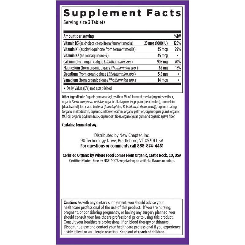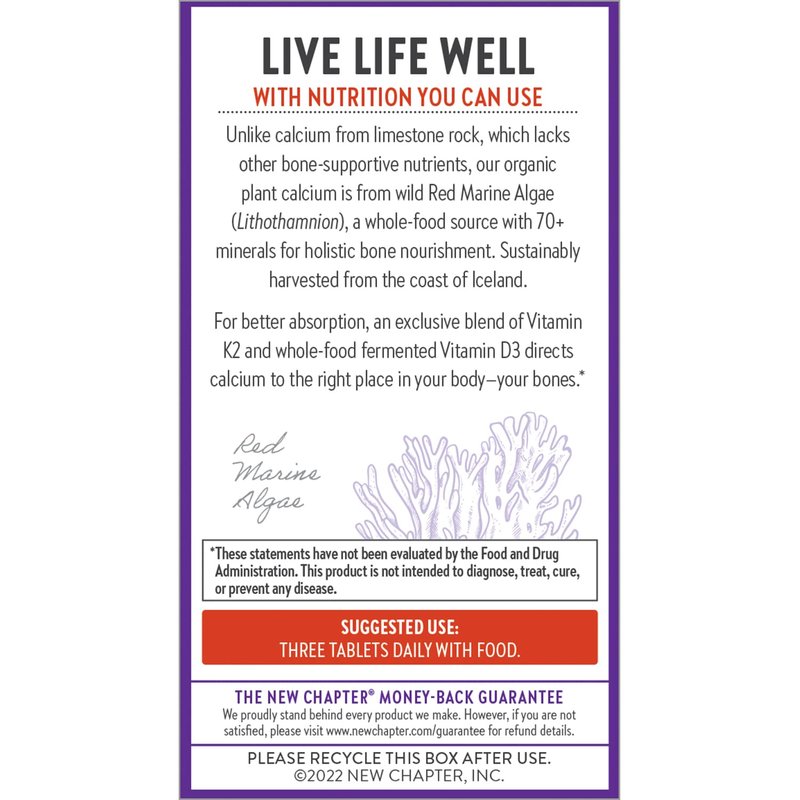 New Chapter Calcium Supplement - Bone Strength Organic Calcium with Magnesium, Vitamin D3+K2, 70+ Trace Minerals for Bone Health, Gluten Free, Easy to Swallow - 60 Slim Tablets