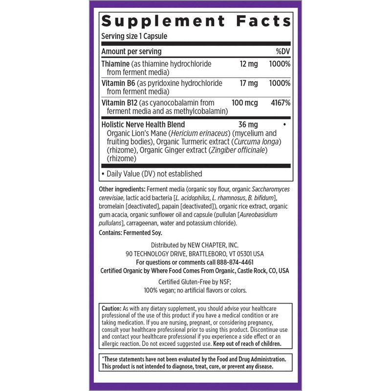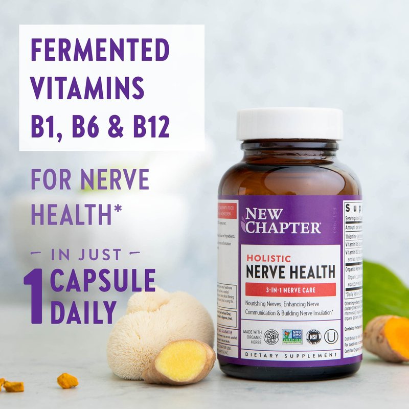 New Chapter Nerve Health Supplement for 3-in-1 Nerve Support from Head to Toe—Vitamin B1 Generates Energy for Nerves,Vitamin B6 Enhances Nerve Communication,Vitamin B12 Builds Nerve Insulation,30ct