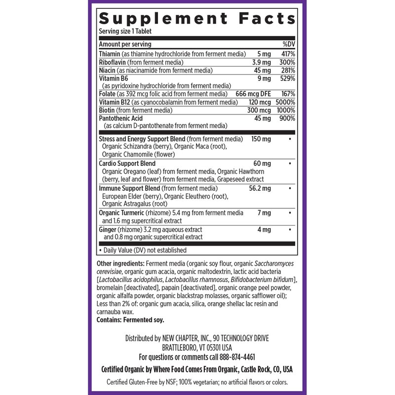 New Chapter Vitamin B Complex – Fermented Coenzyme B Complex Rich in Vitamin B12 + Vitamin B6 + Biotin + Made with Organic Ingredients - 60 ct