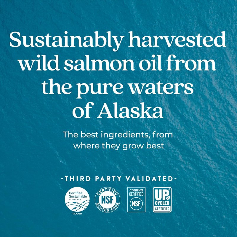 - 100% Wild Salmon Oil from Certified Responsible Alaska Fisheries, Contents NSF Certified, Certified Gluten-Free by NSF, Non-GMO Tested, No High-Heat Processing, No Artificial Flavors, No Sugar or Sweeteners (added to some Omega-3 fish oil gummies), No Farmed Fish, No Krill Oil, No Cod Liver Oil, BSE-free softgels. (Packaging May Vary)