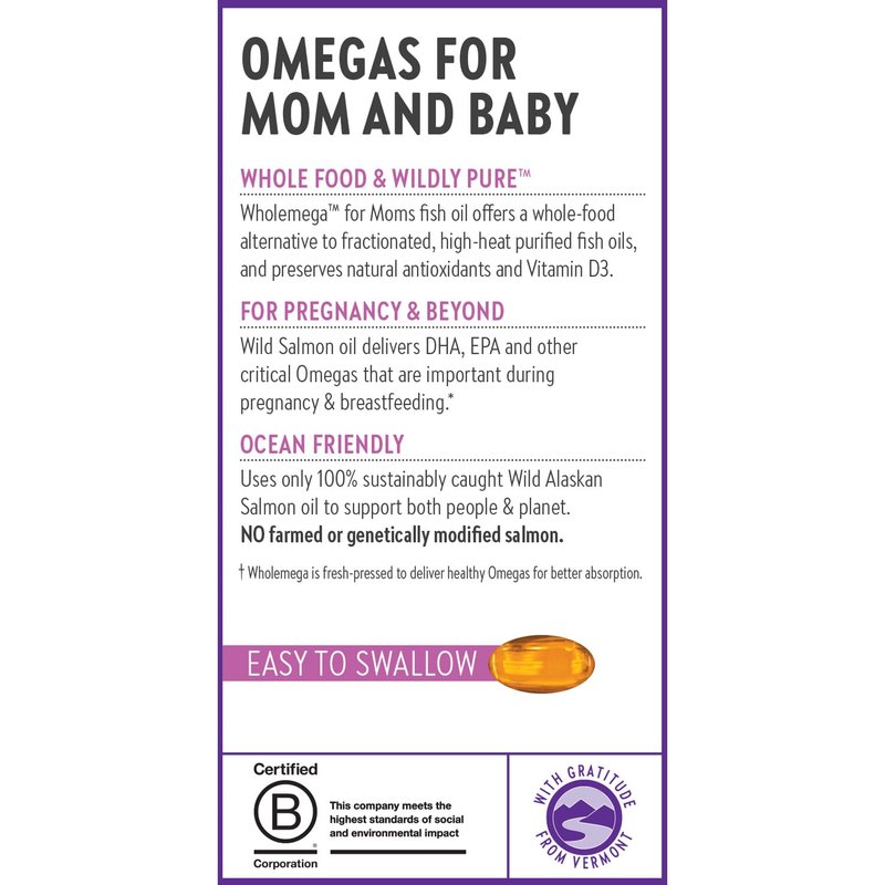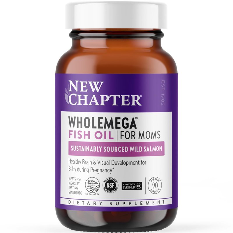 New Chapter Wholemega for Moms Fish Oil Supplement - Prenatal DHA with Omega-3 + Vitamin D3 for Prenatal & Postnatal Support - 90 ct, 500mg Softgels