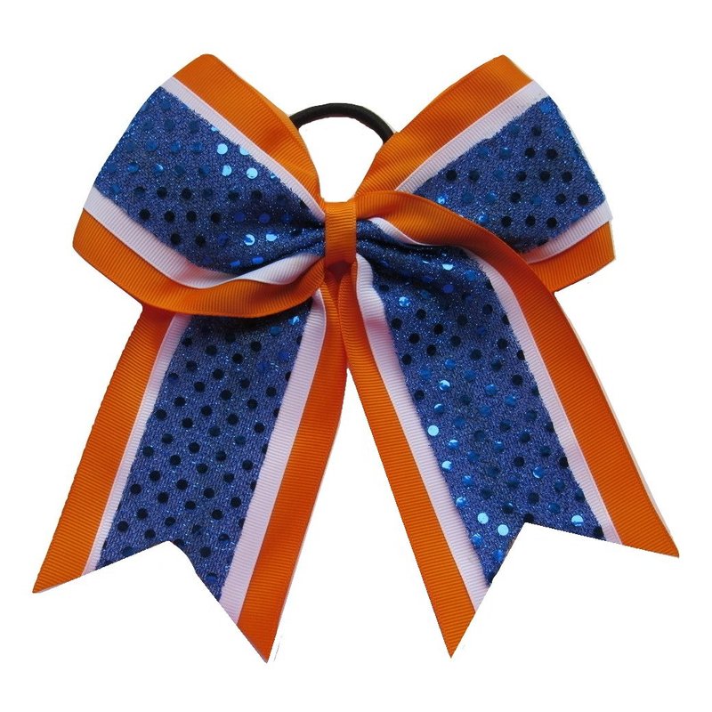 This listing is for a Boutique Grosgrain Ribbon Cheerleading Hairbow! FUNKY & FUN! These are hand-made by me! The Hairbow is made out of orange colored premium 3 inch grosgrain ribbon, white grosgrain ribbon, and a sparkly royal blue confetti dot tulle fabric! These Boutique Bows are approx. 7 inches in length and 7 inches wide. Cheer Bows are attached to a stretchy elastic hair tie! Great for Cheer Practice, Football Games, Pageants, Cheerleading, Gymnastics, Dance, Vacations, Birthdays, Easter, and more! Your daughter will love these bows! Check out my store for other hairbow colors & styles!