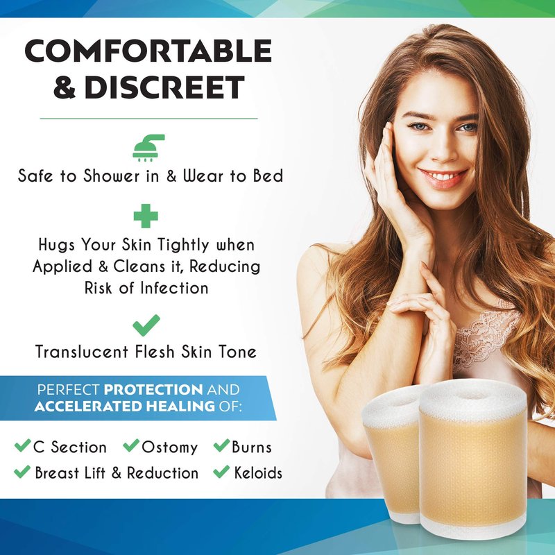 - Safe & Hypoallergenic - Our Silicone Scar Tape is made from medical-grade silicone, ensuring it is safe and gentle on all skin types, including sensitive and acne-prone skin. Whether you're using it for post-tummy tuck compression, c-section recovery, or keloid scar treatment, trust our silicone patches to provide effective and non-irritating scar care.