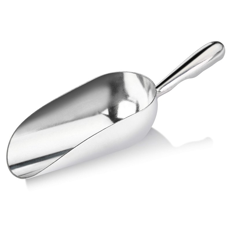 - One-piece aluminum construction, this scoop is a durable alternative to plastic scoops that are prone to breakage.