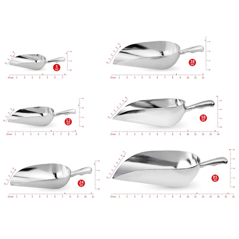 - Commercial-Grade Aluminum utility scoop great for ice, sugar, flour, popcorn, and candy.