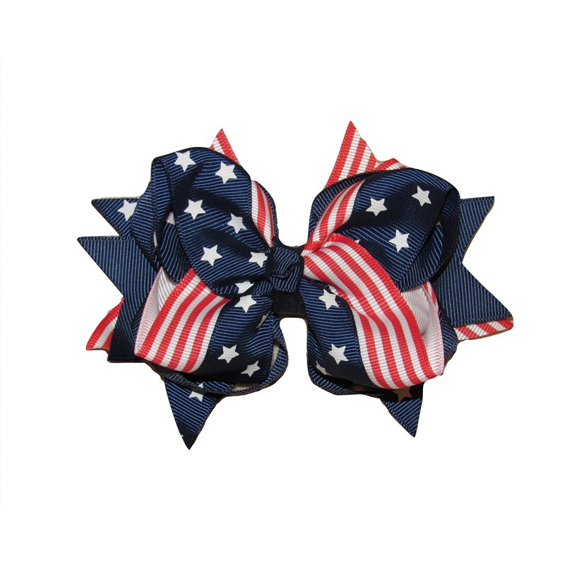 New "Stars & Stripes" 4th of July Hairbow Alligator Clip Girls 5 Inch Hair Bow Boutique Fireworks USA Patriotic Memorial Day Veteran's Day Grosgrain Ribbon