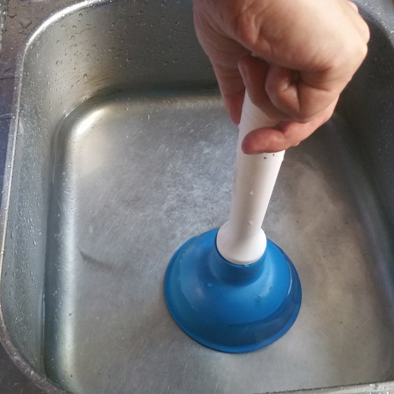 *Lift the plunger up and repeat the plunging action until the clogged sink drains free.