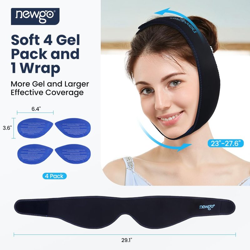 - Face Oral & Wisdom Teeth Pain Relief - Updated with 4 large gel ice packs. NEWGO wisdom teeth ice packs for face are considerately designed with upgraded leak-proof nylon fabric in water drop shape to ensure a perfect contour to the face & oral aera, and delivers the immediate pain relief from wisdom teeth extraction, oral or TMJ pain & aches, cosmetic injections, dental surgery and many more in an economical way.