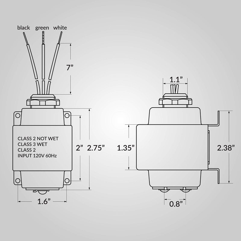 - Quick and easy installation: simply mount to electrical box via threaded connector or screw down. Input voltage: 120 Vac, 60Hz | Output voltage: 16 Vac at 30VA