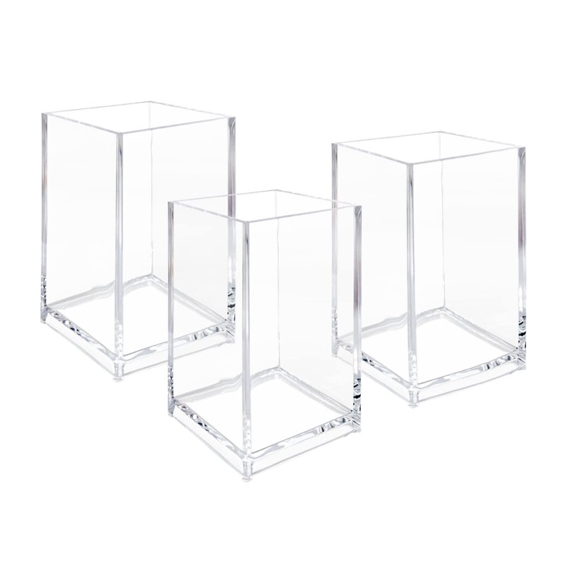 Newkita 3 Pack Clear Acrylic Cosmetic Pencil Pen Holder Cup, Clear Makeup Brush Holder, Desk Acrylic Brushes Storage