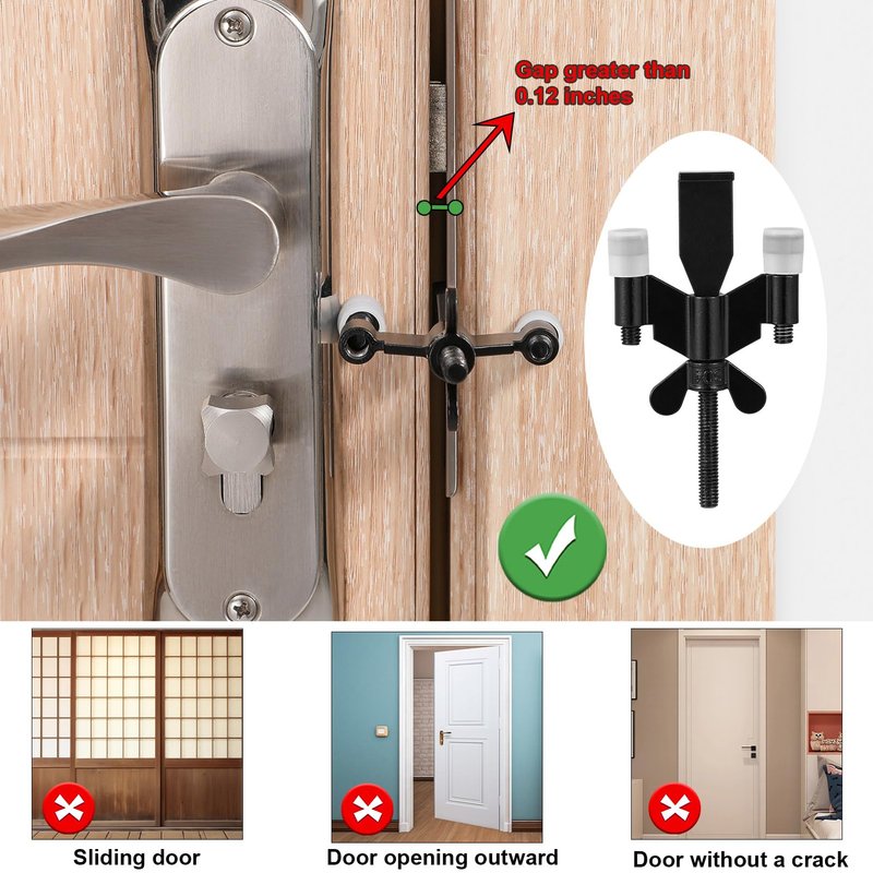 - 🔒【UPGRADE ADJUSTABLE & WIDE APPLICATION】:Our door lock comes with two clear protective caps to protect the door from damage. Upgraded with adjustable screws on both sides, you can adjust the screws on both sides and the butterfly knob to find the best thickness for your door. Suit for most of home, hotel, apartment, dormitory, bedroom doors. Door gaps need to be greater than 0.12 inches.