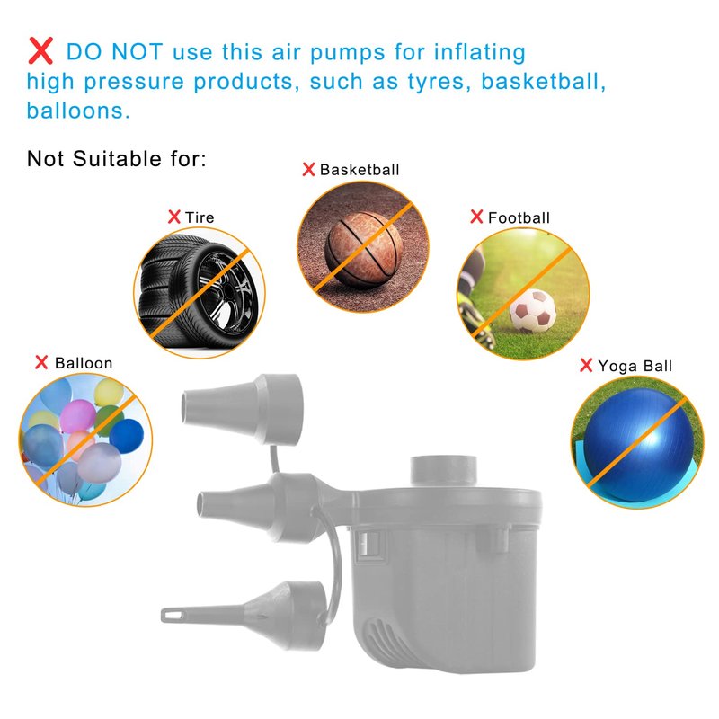 - Multi purpose: It can be used for inflatable beds, inflatable boat, inflatable swimming pools,inflatable water toys, inflatable swim ring, inflatable furniture sofas, vehicle inflatable beds, etc.