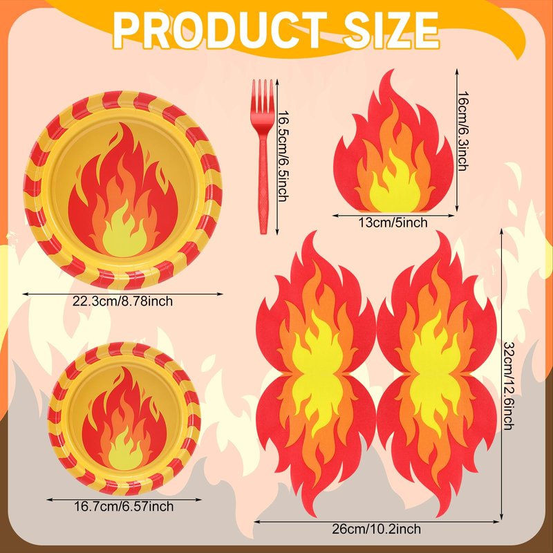 - Fire Theme Dinnerware Set: our package includes 25 pcs 9 inches fire plates, 25 pcs 7 inches fire plates, 25 red forks, 1 bag fire napkin ( 50 pcs) , comprehensive and nice in combination, designed for fire theme party, well meeting your needs for use, replacement and sharing