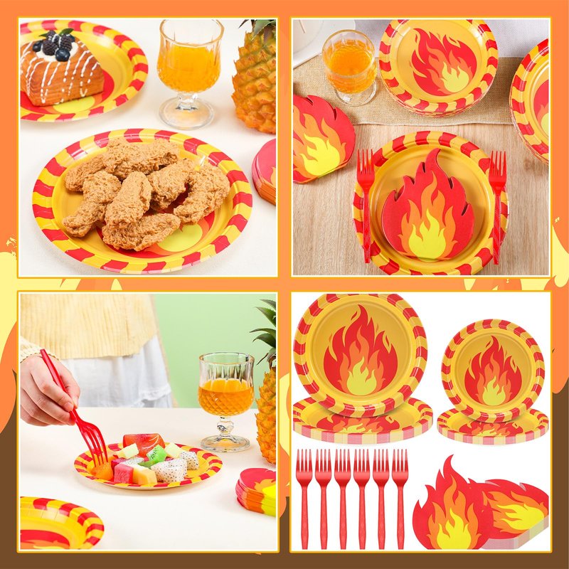 - Disposable Tableware: our fire plates and fire napkins are disposable, ideal accessories for fire theme parties, you can throw them away after use, saving the time for organizing and cleaning, allowing you have more time to enjoy the fun and joy of the party