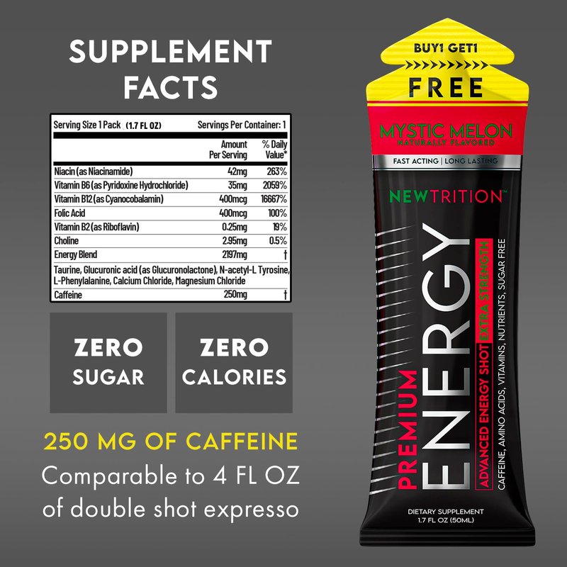 - Energy Supplements: NewTrition's Extra Strength Energy Shots provide a quick, effective, and long-lasting energy boost; Indulge in the refreshing taste of raspberry, which is sure to delight while giving the energy kick you need