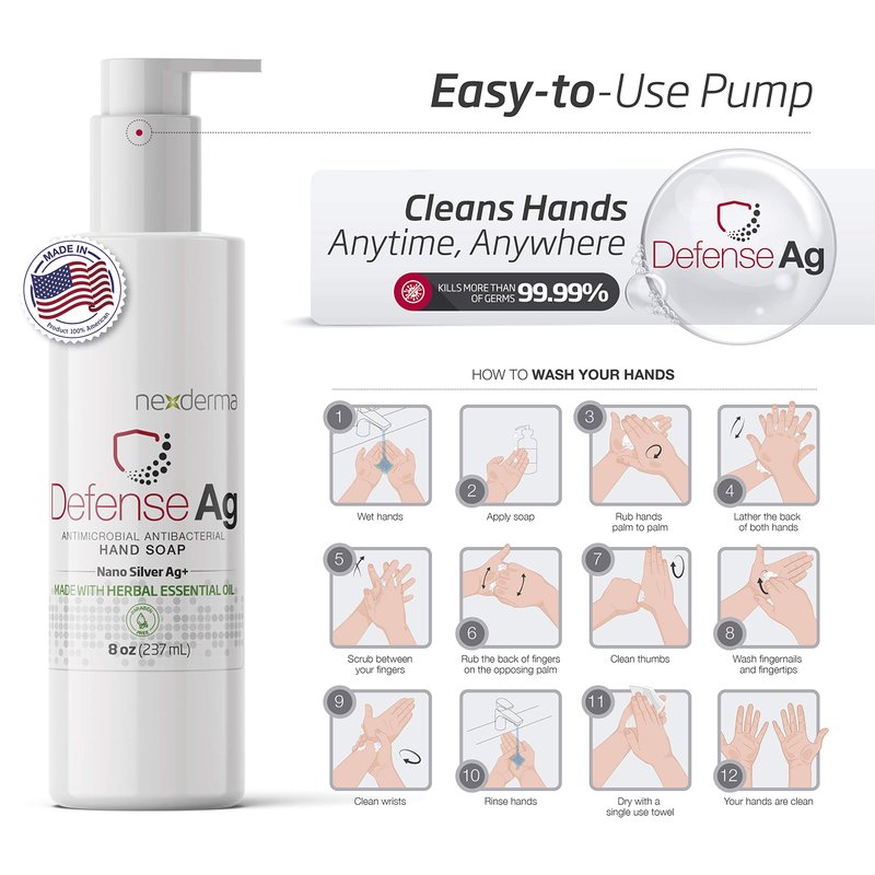 NEXDERMA Defense Ag Hand Soap with Herbal Essential Oil | Paraben free Moisturizing Everyday Hand Soap | Multipack - 8 Oz (236ml Each) - Pack of 4