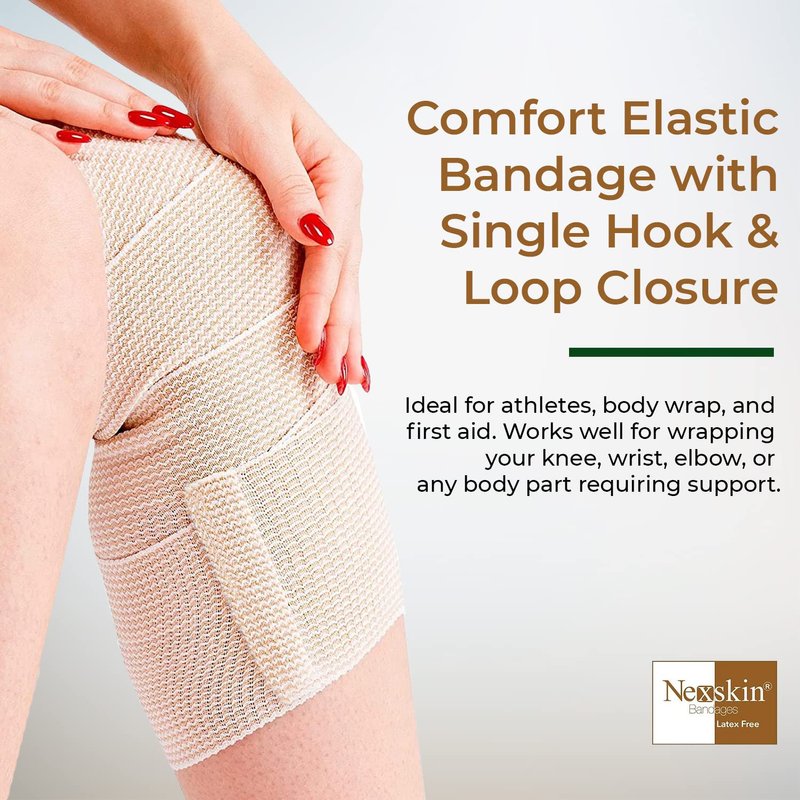 Nexskin 6 Inch Specialty Nonsterile Elastic Bandage with Single Hook and Loop Closure provides moderate compression. Our comfortable elastic wraps are made of latex free material to avoid any allergic reaction. The odor resistant fabric allows for extended use even during high intensity activities. No sharp metal hooks or clips required. A convenient hook-and-loop closure keeps the wrap secured in place. Whether you're recovering from surgery, a sports injury, or require compression for daily wear, you can rely on Nexskin elastic bandages to support you. Add Nexskin bandages to your household first aid kit or athletic training supplies for relieving pain, joint support, or promoting healing.