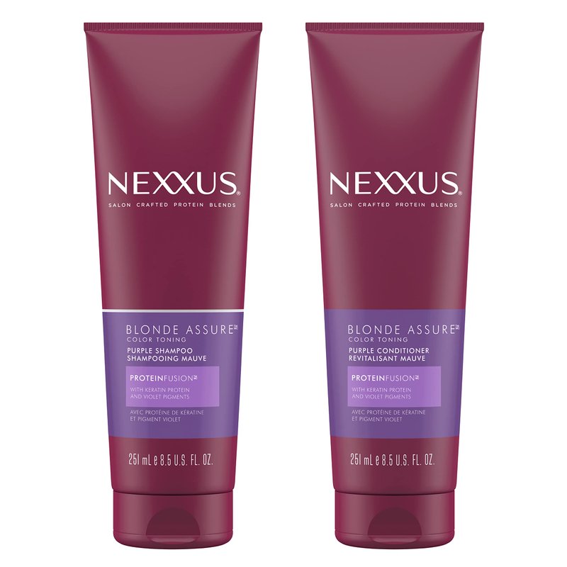 - ENRICH AND BALANCE: Nexxus Blonde Assure Purple Shampoo and Conditioner for blonde, silver, or platinum hair is formulated to help balance brassy tones and enrich color