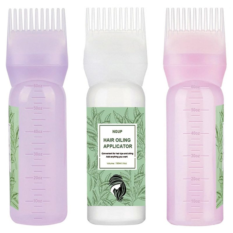 NGUP Hair Oiling Applicator With Comb Root 3 Pack 6 OZ Hair Dye Bottle Plastic Squeeze Bottles Scale for Hair Care Scalp Oil Applicator Hair Oil Dispenser Styling Tool Oiler