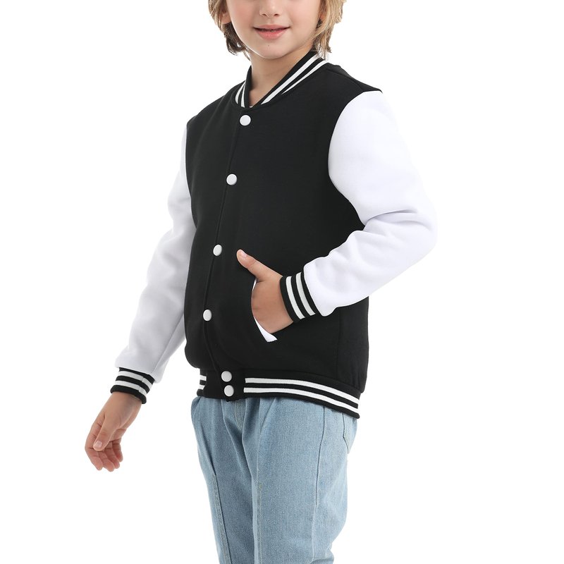 - Varsity Jackets for Boys Girls Featured with Stripe Rib Stand-collar, windproof cuffs and hem, single row of ring buttons, comfortable and intimate, provide warm protection.