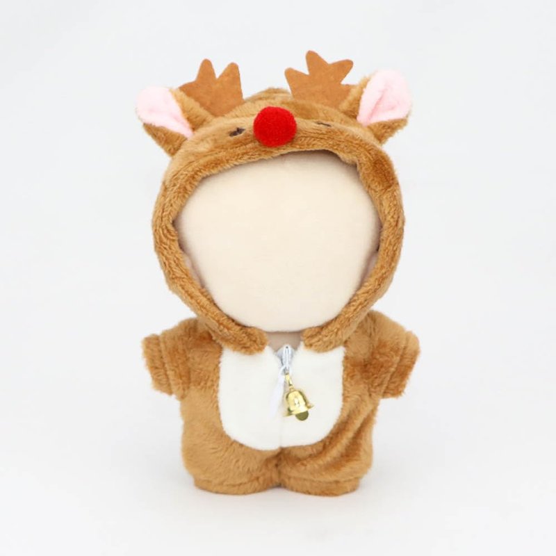 niannyyhouse 10cm Plush Doll Clothes Christmas Deer Dinosaur Shark Onesies Loose Bodysuit Soft Stuffed Plush Toy Dress Up Accessories (Brown)