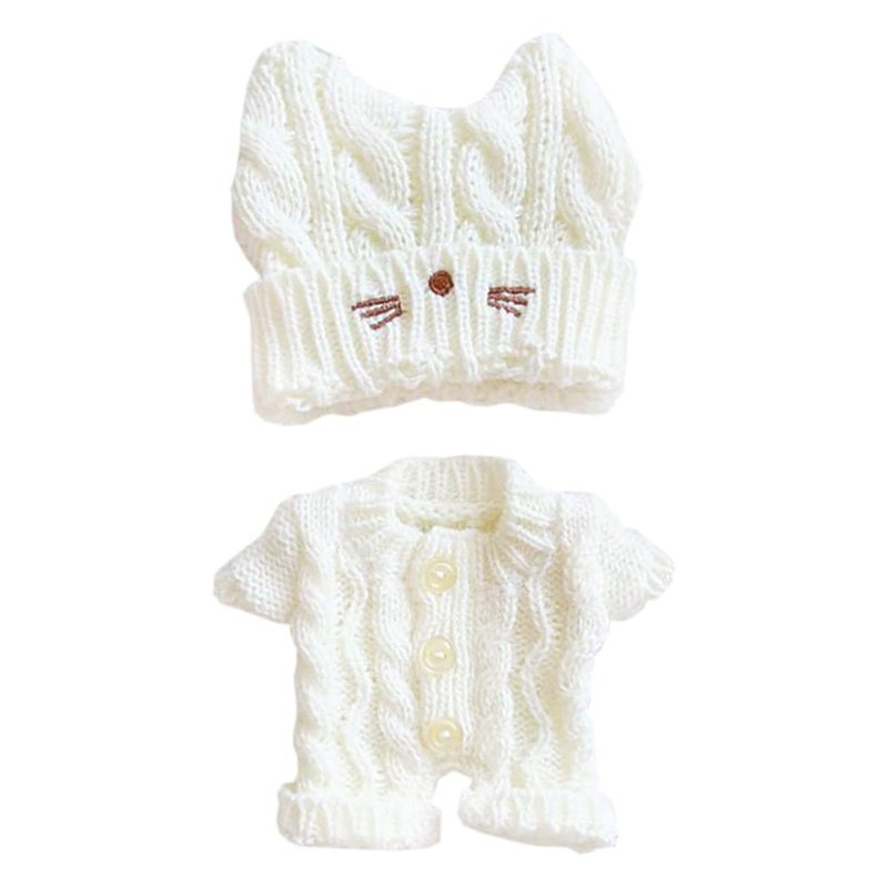 niannyyhouse 20cm Plush Doll Clothes Cat Hat Woolen Thread Onesies 8in Doll Accessories (B)