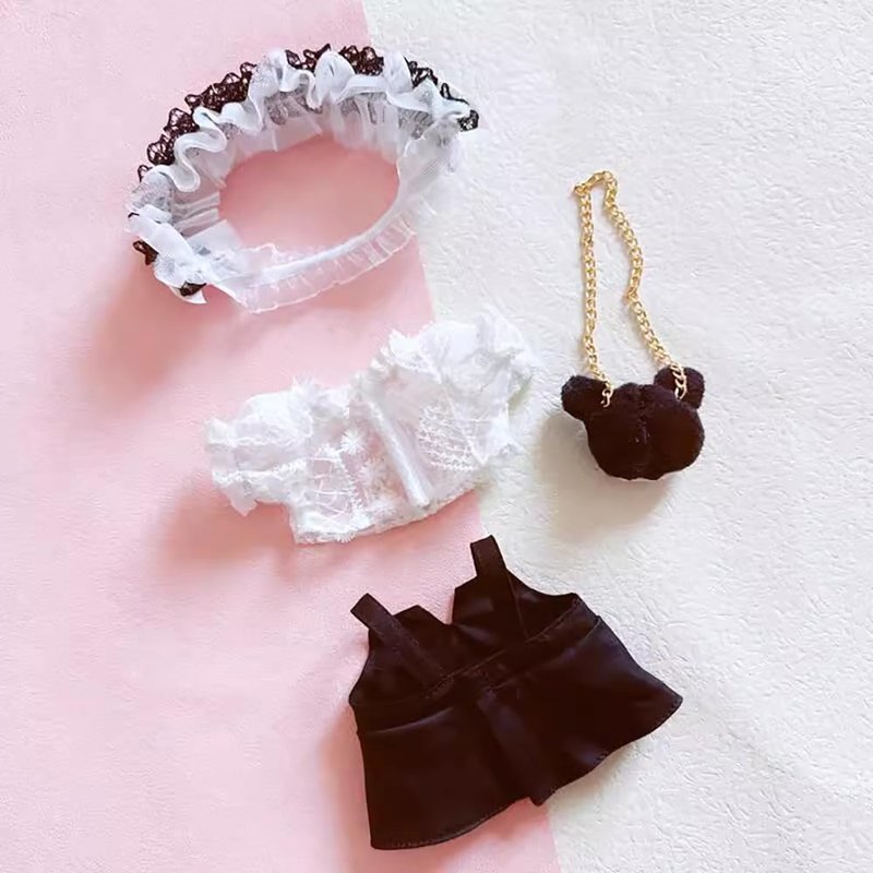 niannyyhouse 20cm Plush Doll Clothes Loose Headwear White Shirt Black Skirt Backpack 8in Soft Stuffed Plush Toy Accessories Dress Up