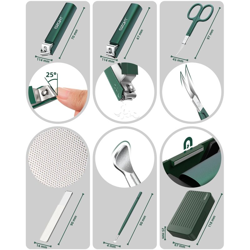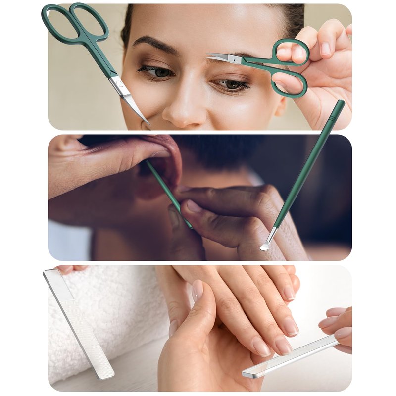 - Complete Nail Care with Precision Nail Clippers: Elevate your nail care routine with our all-inclusive nail clipper set. Our thoughtfully curated kit includes an array of high-quality tools to meet your every nail grooming need. Whether it's precise nail trimming, nail shaping, nail smoothing, or even ear cleaning, our set has got you covered.