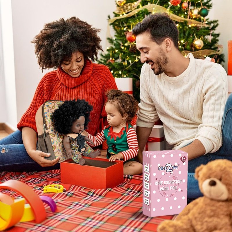 - 【Adorable and Realistic Doll】 - Nice2you black baby doll is designed to be as realistic as possible, and curly hair that can be styled and combed. Its size is perfect for little hands to grasp. The cute outfit of doll and backpack are sure to be a hit with all the little ones.