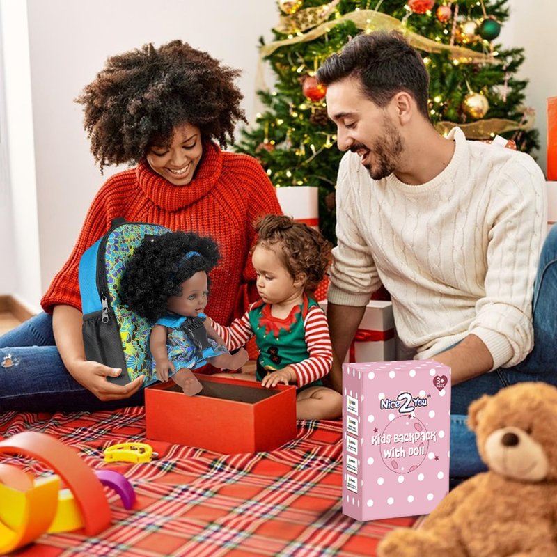 - 【Adorable and Realistic Doll】 - Nice2you beautiful black baby doll with dress is designed to be as realistic as possible, and curly hair that can be styled and combed. Its size is perfect for little hands to grasp. The cute outfit of doll and backpack are sure to be a hit with all the little ones.