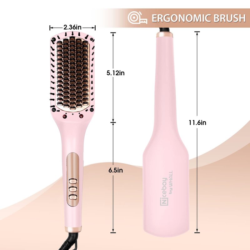 Nicebay Hair Straightener Brush, Negative Ion Hair Straightening Brush for Women, Anti Scald and Auto Off Feature, Fast Heating and 6 Temp Settings Renewed