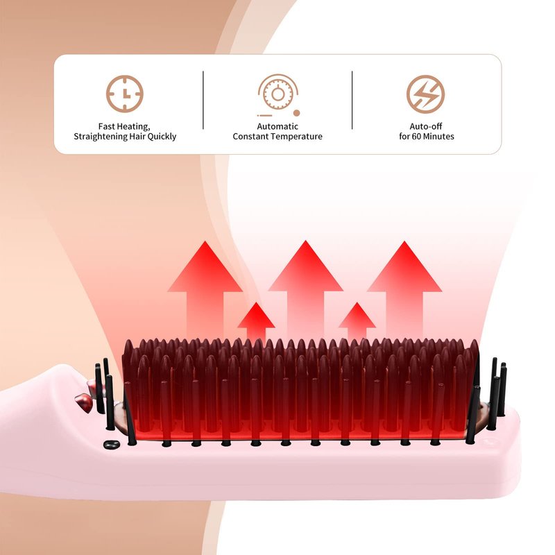 Nicebay Hair Straightener Brush, Negative Ion Hair Straightening Brush for Women, Anti-Scald & Auto-Off Feature, Fast Heating & 6 Temp Settings, Pink & Orange (Renewed)
