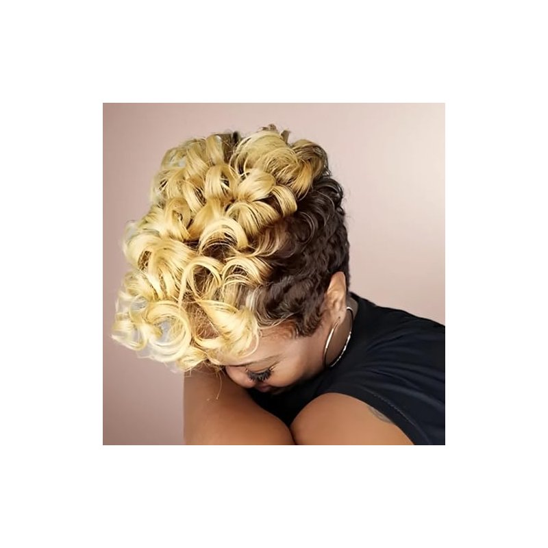 Nicelatus Short Pixie Cut Wigs with Wavy Bangs Ombre Brown Hair Wig Short Wigs for Black Women… (Nicelatus-Gj9632)