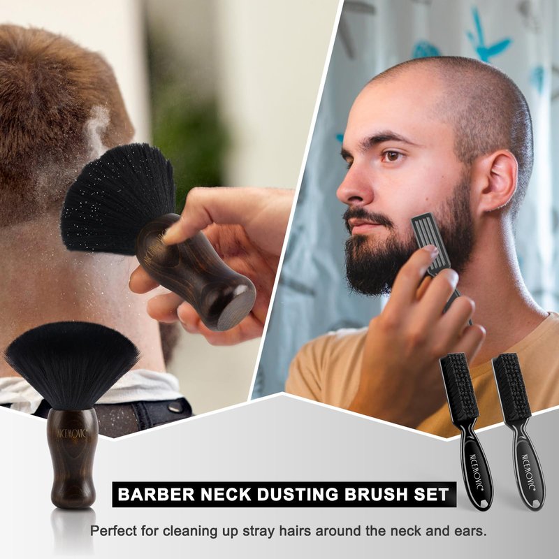 - 【3 in 1 Barber Accessories Cleaning Supplies】: Neck Duster Brush set for Haircutting is made of fibers that are lint free and exciting. Premium wood for super comfort. The perfect accessory for all barbers and stylists.