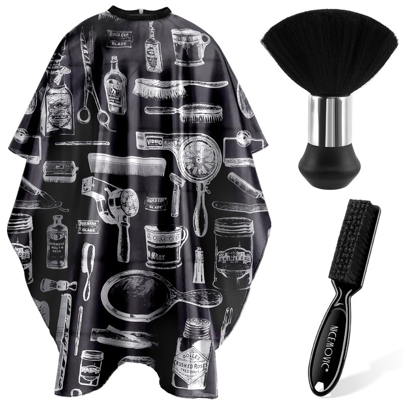 - 【PACKAGE INCLUDES】Essential barber accessories for barbershops and home barbers, 1 x Salon barber cape with snap closure, 1 x Neck duster brush, 1 x Barber cleaning brush. The perfect accessory for all barbers and stylists.