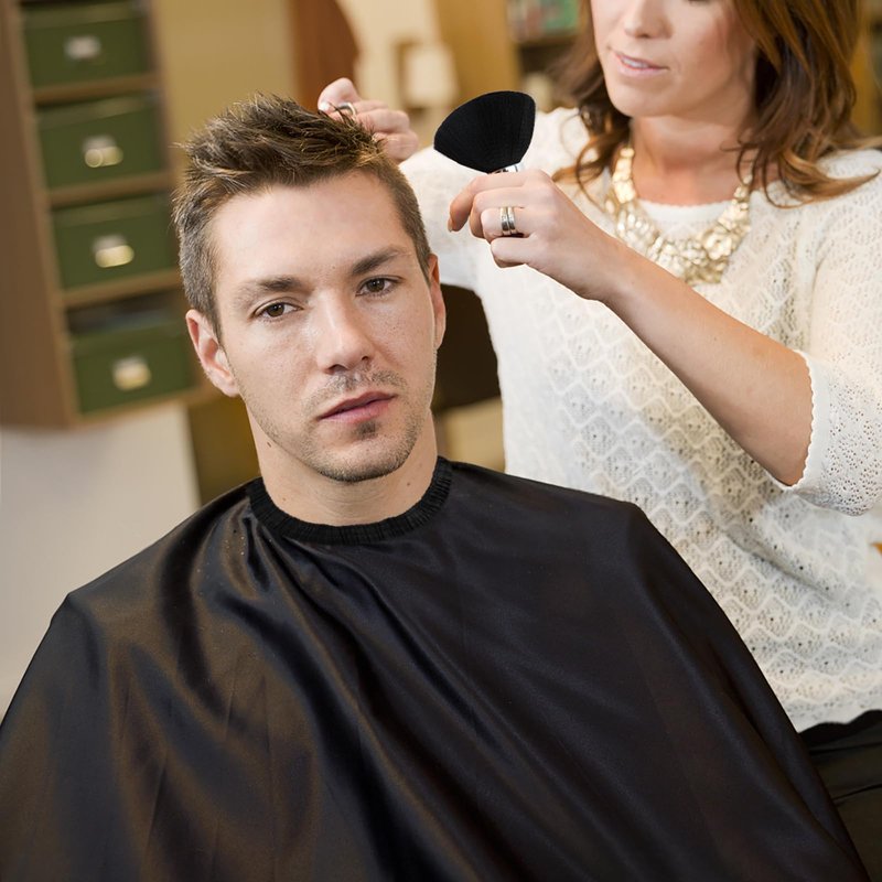 • 【LARGE SIZE】The barber cape measures 57 x 46 inches, which is large enough to completely cover the body and prevent hair from falling into the collar or staining clothing during a haircut or conditioning session, whether you're sitting or standing, making it perfect for salon haircuts and home haircuts.