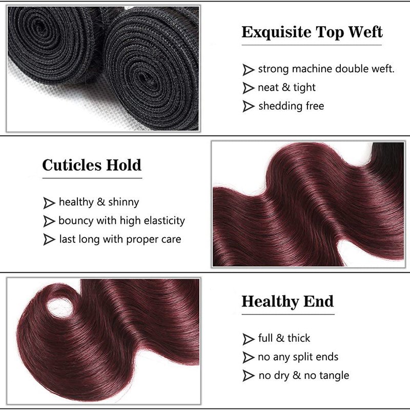 Color:1b/99j bundles,Wine Red,Black to Burgundy.