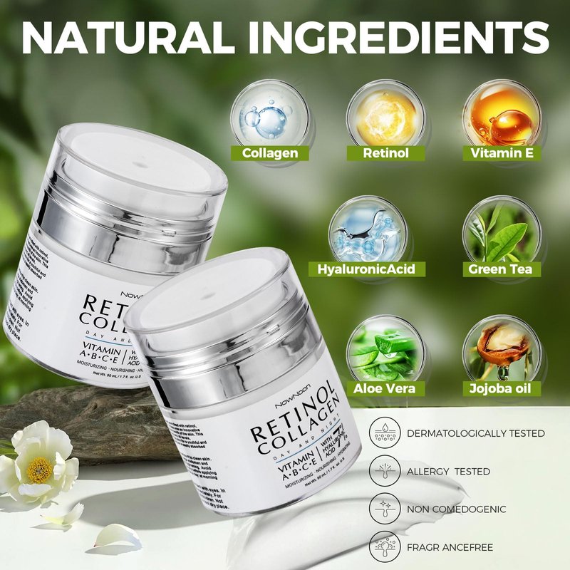Retinol Cream for Wrinkles: Face Collagen Cream for Tightening Skin - Anti Aging Facial Moisturizer Day and Night for Women and Men 1.7 Fl OZ