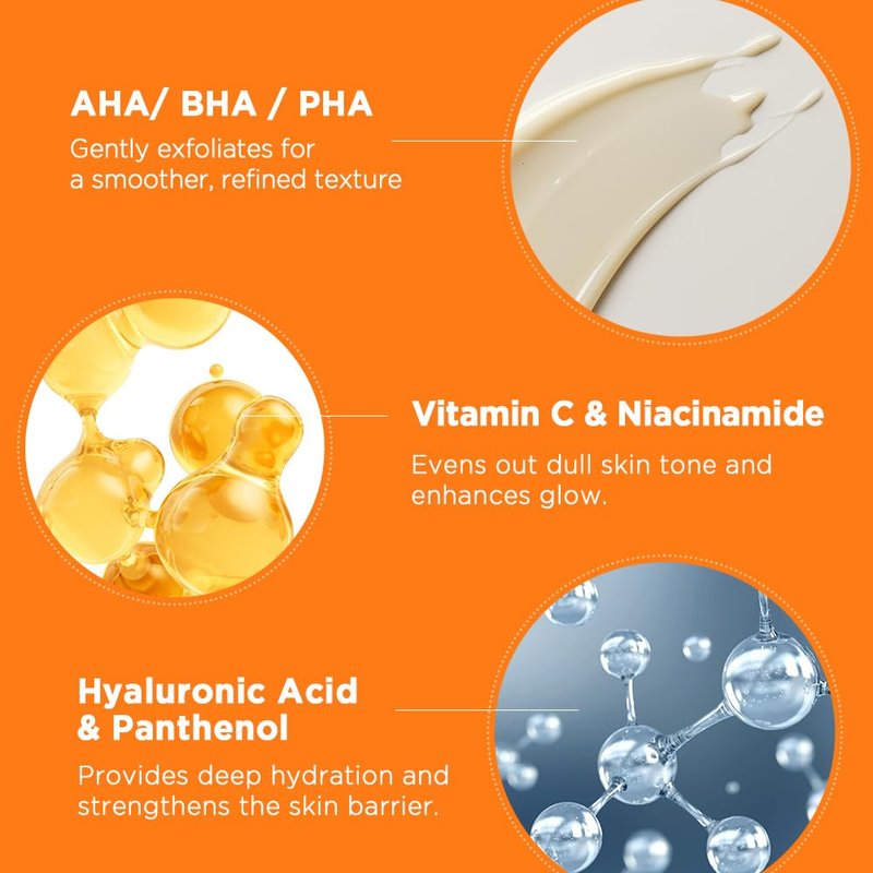- [Triple Peeling] Plant-derived AHA, BHA, and PHA gently exfoliate dead skin cells, leaving your skin smooth and refined.