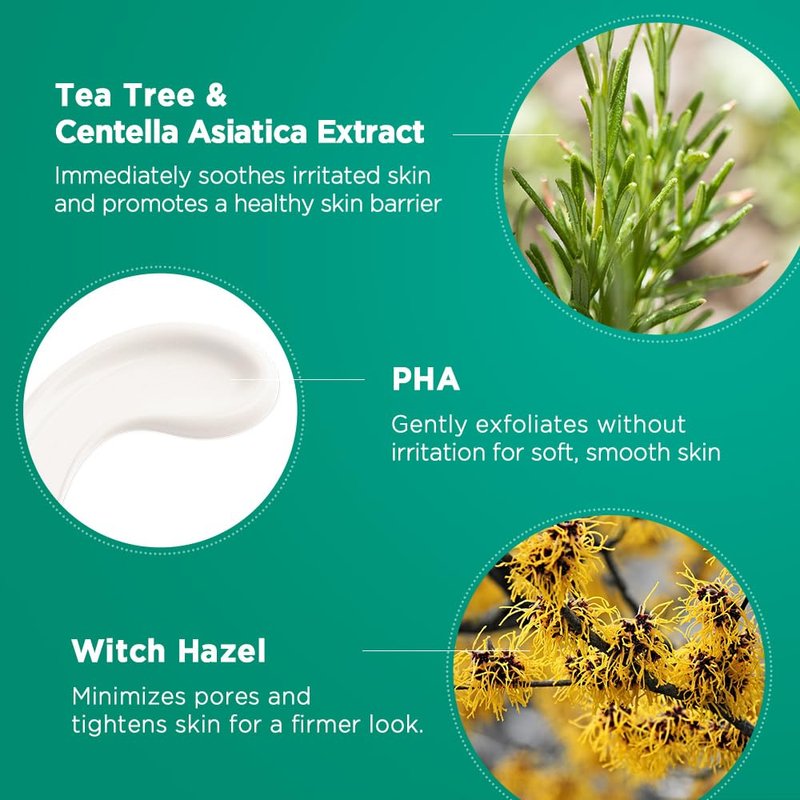 - [Instant Relief for Sensitive Skin] Infused with tea tree, centella asiatica, and houttuynia cordata extracts known for their exceptional soothing properties, this formula quickly calms irritated and sensitive skin, providing gentle care even for problematic skin.